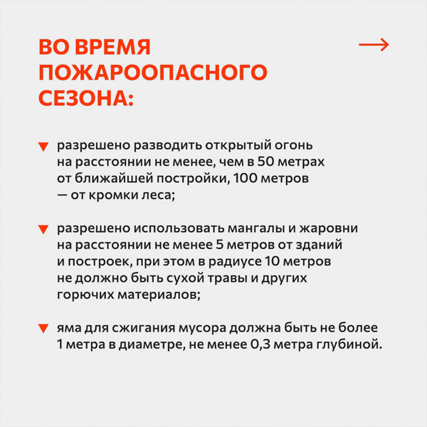 — мангалы и жаровни можно располагать на расстоянии не менее 5 метров от зданий и построек, при этом в радиусе 10 метров не должно быть сухой травы и других горючих материалов;