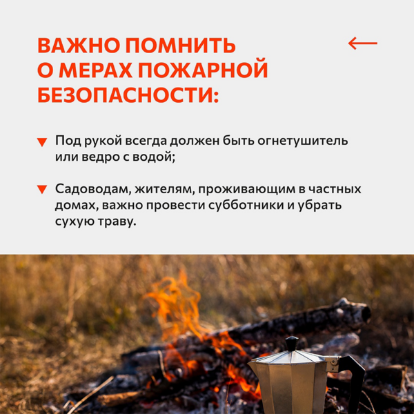 «С наступлением сухой, тёплой и ветреной погоды резко увеличивается количество возгораний сухой растительности, поэтому с наступлением пожароопасного сезона запрещены травяные палы в полях. Кроме того, не допускается разведение костров в любых лесах, сжигание порубочных остатков из заготовленной древесины. Будьте внимательны, не бросайте горящие спички, окурки, стекло», - сказал первый заместитель губернатора Свердловской области Алексей Шмыков.