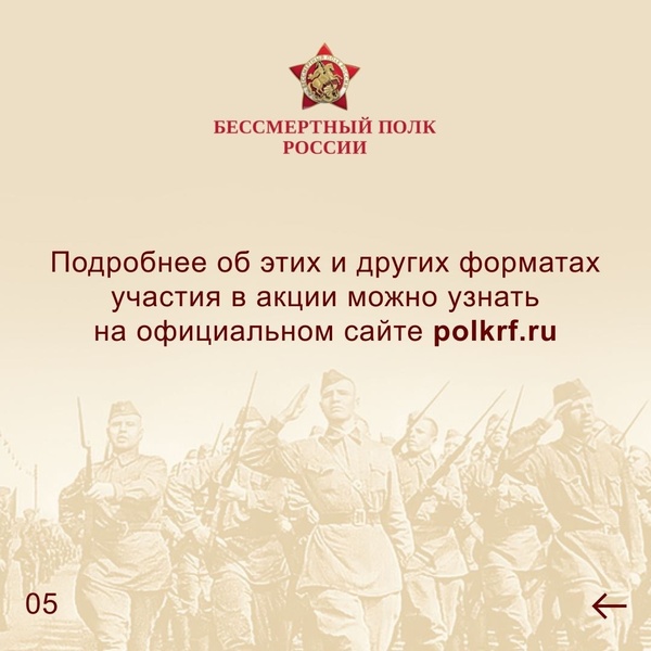 Подробнее об этих и других форматах участия в акции можно узнать на официальном сайте движения (https://www.polkrf.ru/).